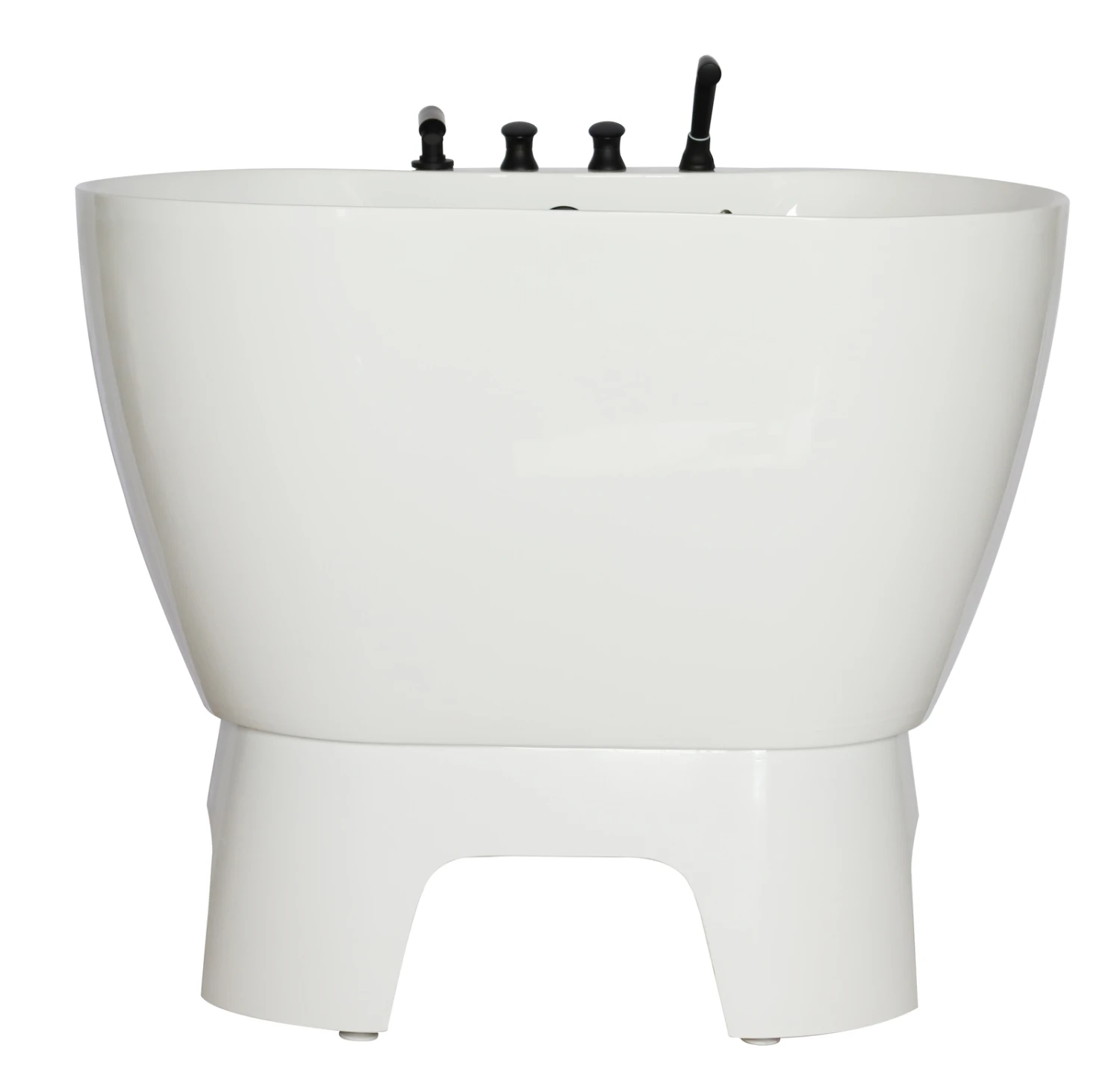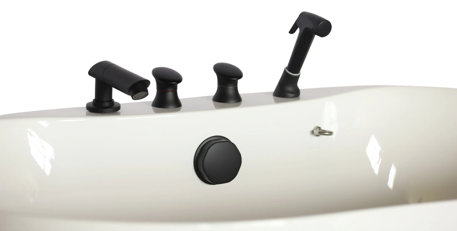 - Drainage open/close is controlled by the black button on the backside of tub.
