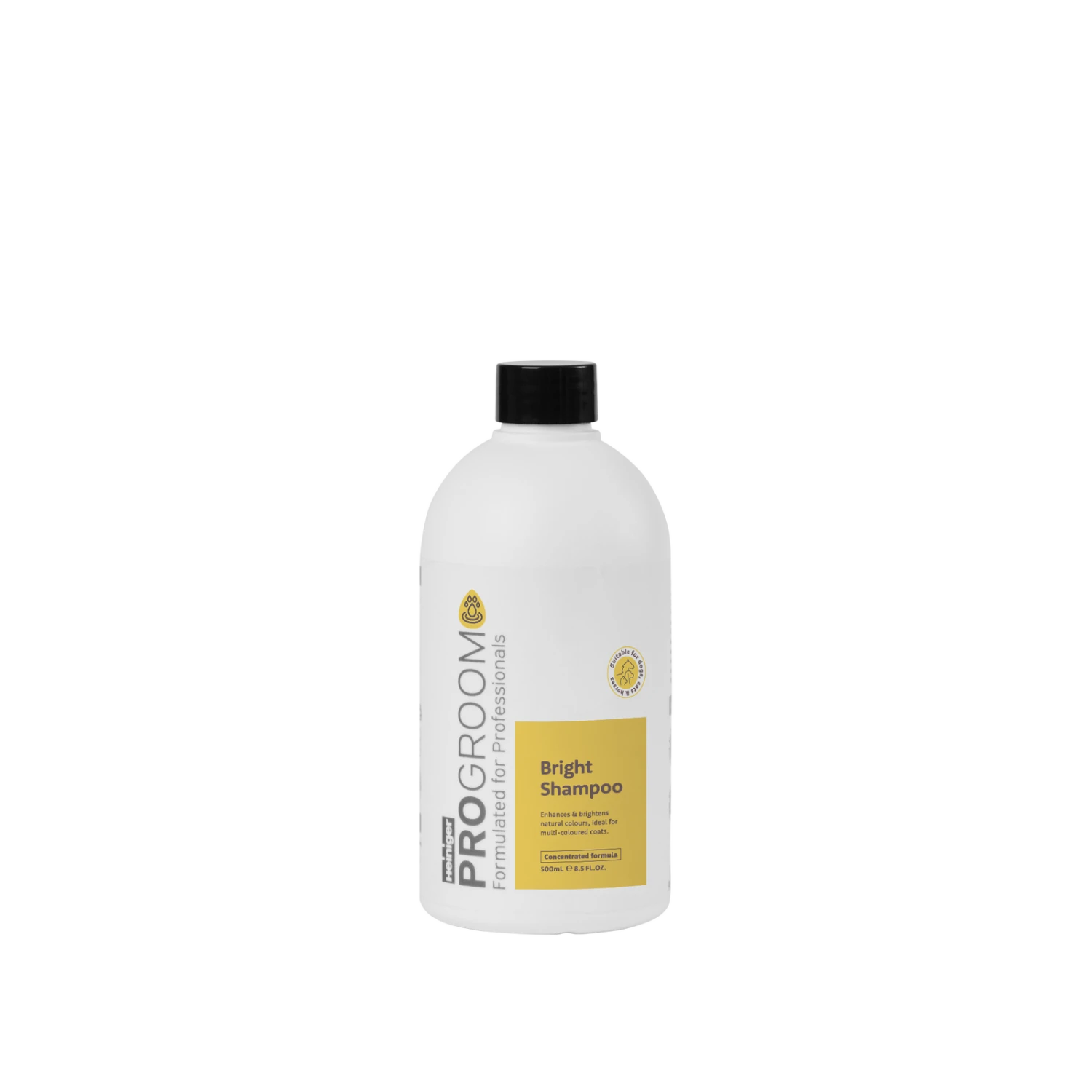Bright shampoo is designed to enhance all coat colours and to optimize the lustrous appearance of the coat. It contains natural moisturising agents and optical brighteners that will make coats sparkle and colours pop.