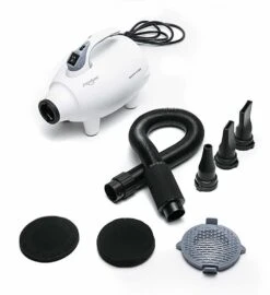 - Use a stream of air warmed by flowing over the motor to effectively blow water off the coat to cut drying dramatically, it also equiped with additional heating unit.